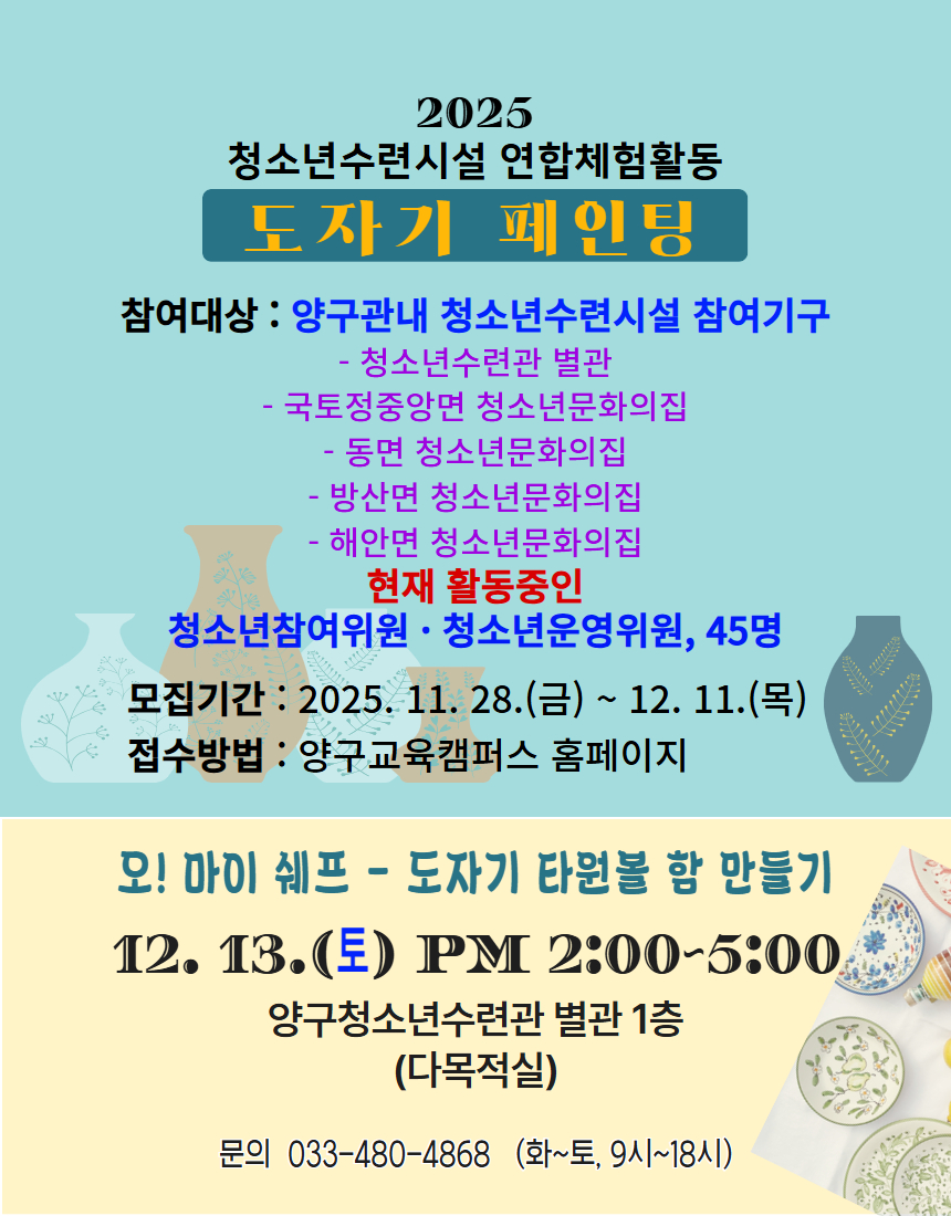 청소년수련시설 연합체험활동 '도자기 페인팅'