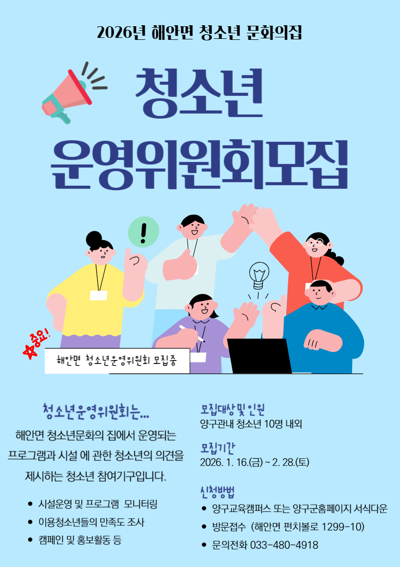 해안면 청소년운영위원회 모집