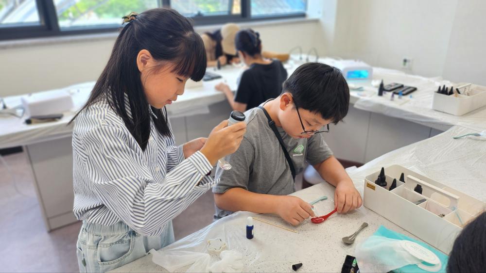 레진을 넣고 굽는 시간을 아이들이 제일 기다리기 어려워했어요