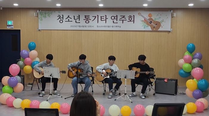 청소년들의 기타실력을 뽑낼 수 있는 자리를 만들어주니 청소년들도 기뻐하고 연주를 들으시는 분들도 기분이 좋으셨다고 하셨습니다.