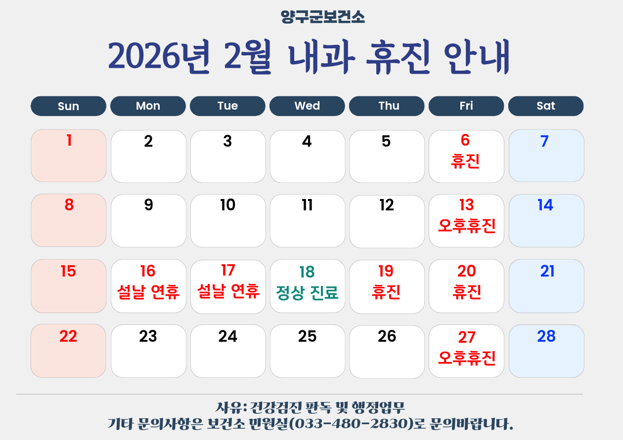 2월 양구군보건소 내과 휴진 안내