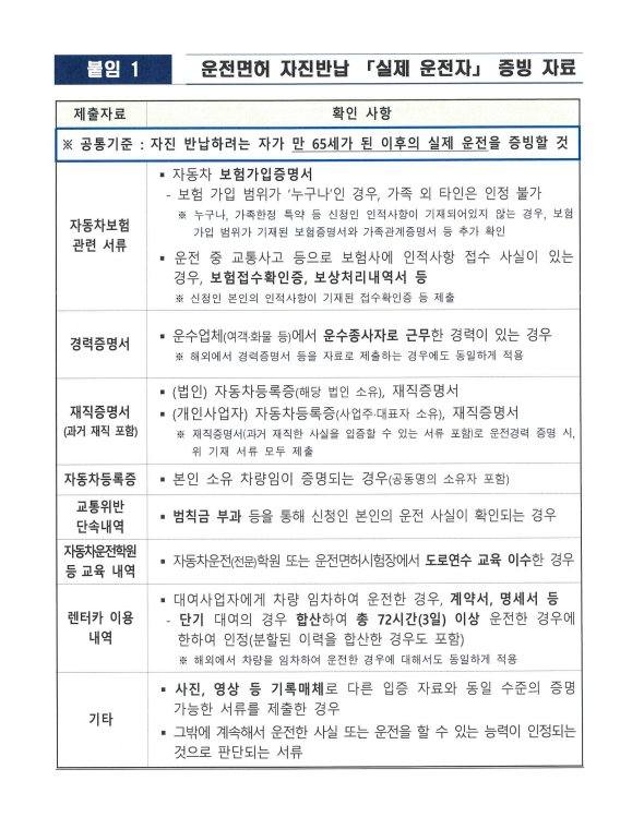 운전면허 자진반납 실제 운전자 증빙자료.png