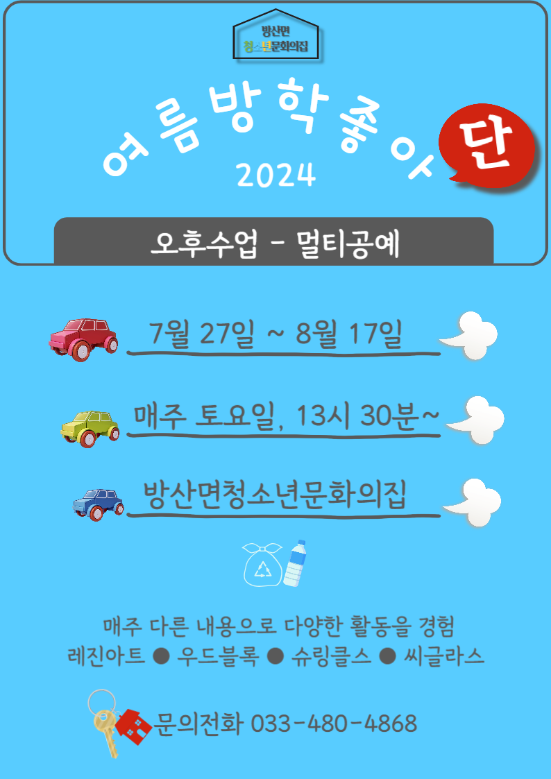 안녕하세요? 방산면청소년문화의집입니다. 여름방학 주말 프로그램 안내입니다.