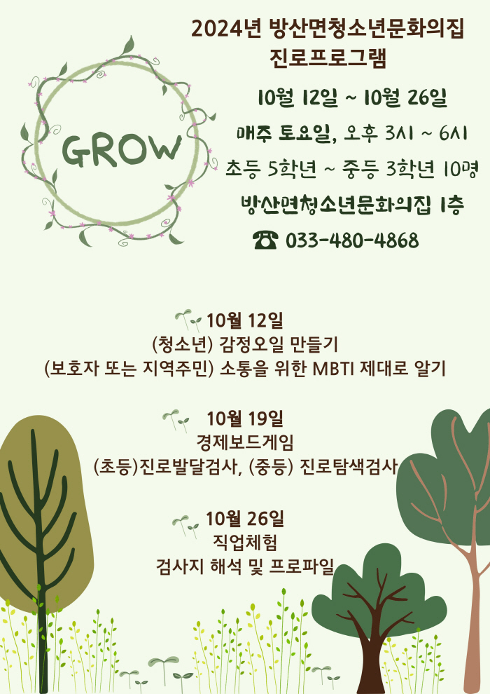 안녕하세요? 방산면청소년문화의집에서 야심차게 준비한 진로프로그램 안내입니다.