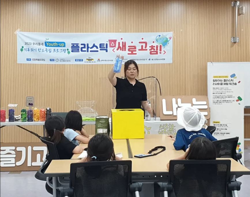 사출체험 하기 전 기후위기에 관련된 퀴즈를 맞추면서 환경지식을 쌓았습니다.