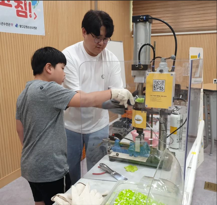 양구군청소년수련관에서 병뚜껑을 이용한 비누 받침대를 사출하는 체험을 했습니다.
